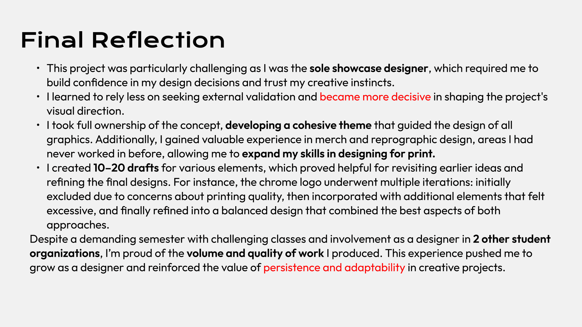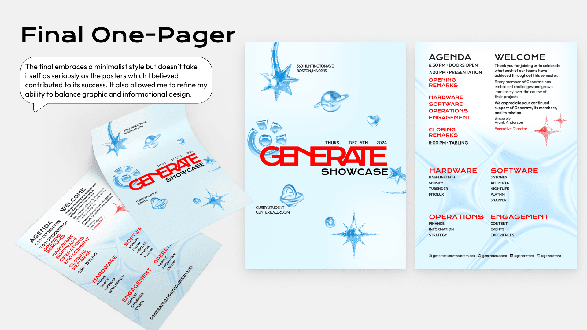 I designed reprographics, merchandise, and social media assets to capture and communicate the innovative spirit of the event. This role challenged me to balance creative expression with strategic branding, ensuring a unified and impactful experience.