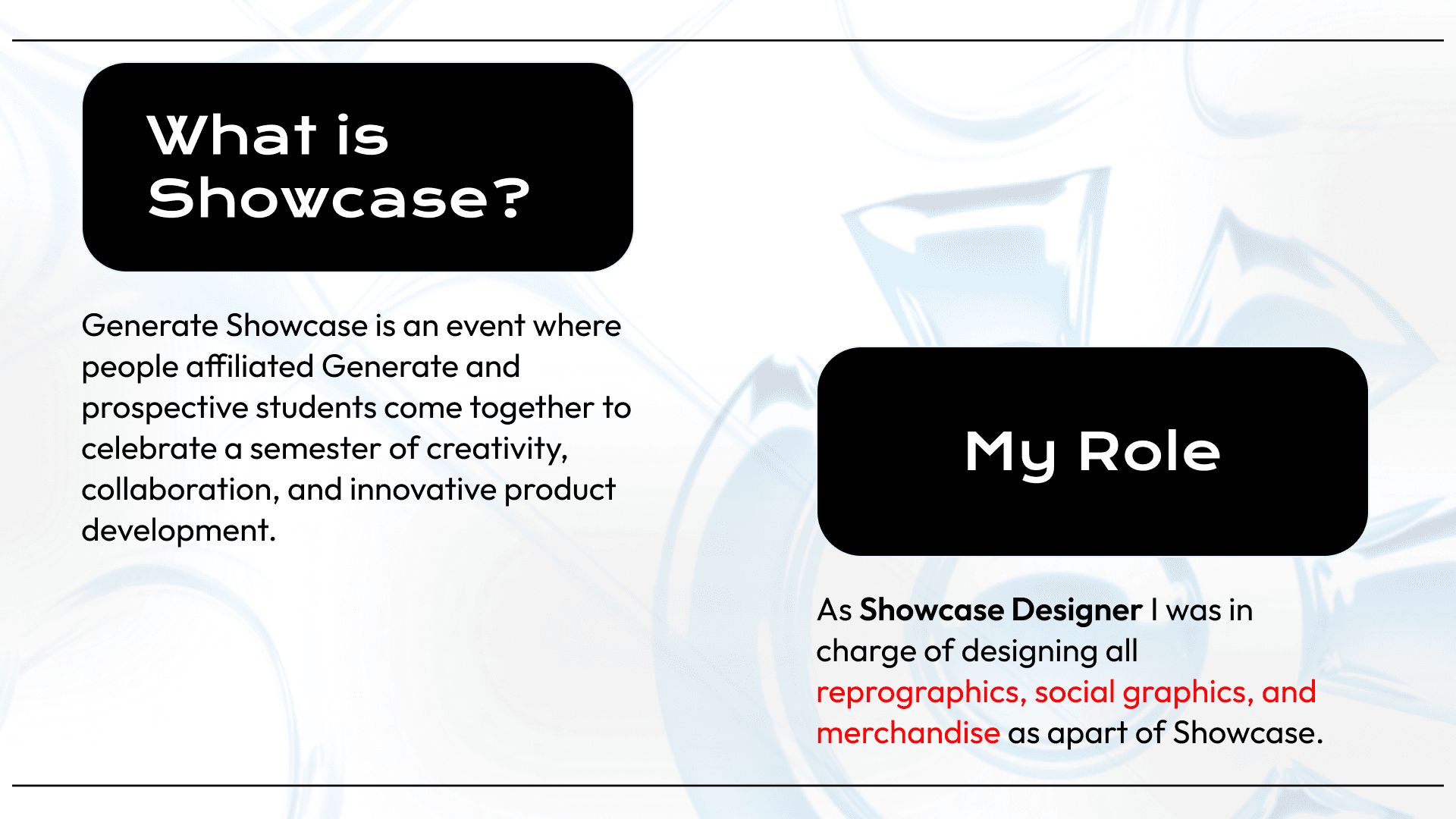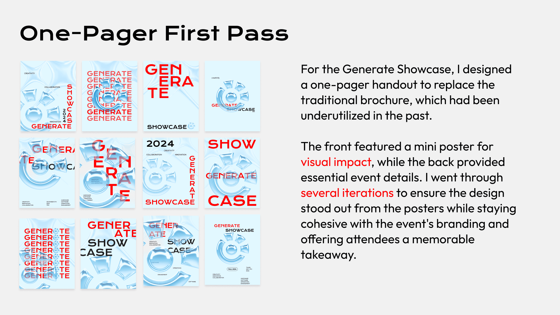 Crafting a cohesive visual identity for Generate Showcase, celebrating innovation and collaboration.